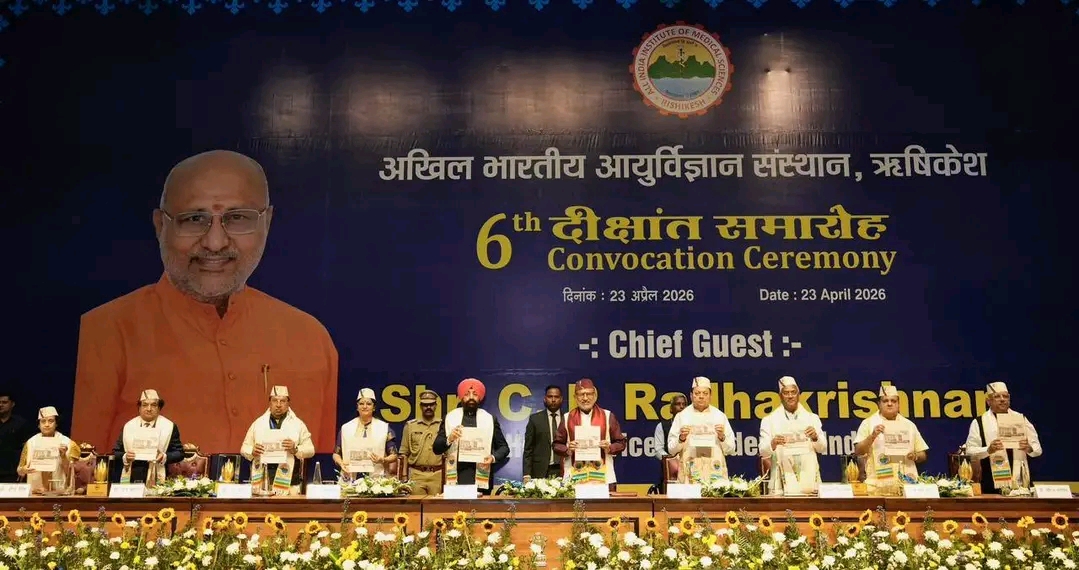Rishikesh: अखिल भारतीय आयुर्विज्ञान संस्थान ऋषिकेश में छठवां दीक्षांत समारोह आयोजित किया गया। समारोह में देश के उप-राष्ट्रपति सी. पी. राधाकृष्णन मुख्य अतिथि के रूप में शामिल हुए। वहीं राज्यपाल लेफ्टिनेंट जनरल गुरमीत सिंह और मुख्यमंत्री पुष्कर सिंह धामी विशिष्ट अतिथि, जबकि केंद्रीय राज्य मंत्री अनुप्रिया पटेल के रूप में मौजूद रहें।