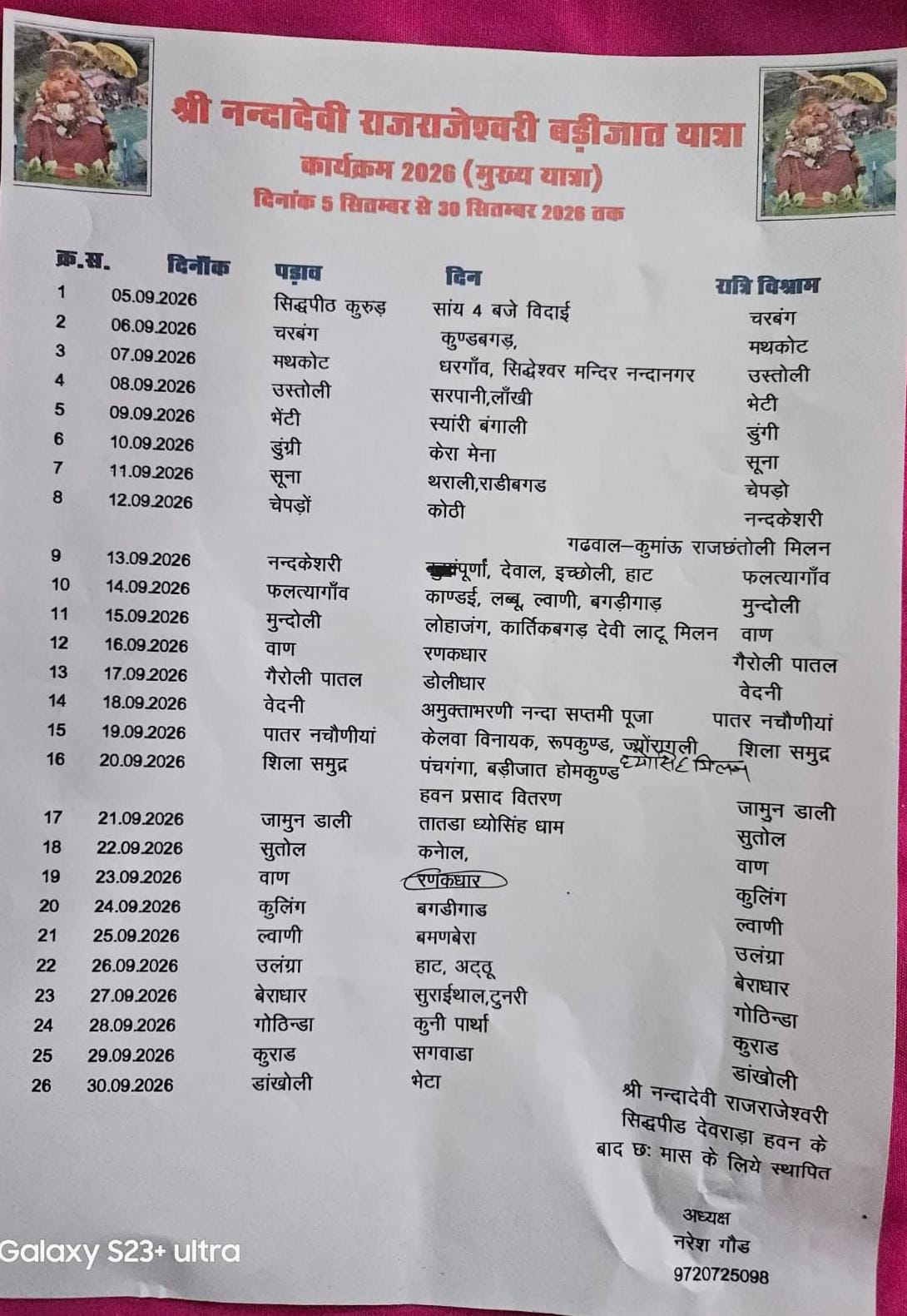 मां नंदा ने अपने मुख्य अवतारी पुरुष पर अवतरित होकर इसी वर्ष कैलाश जाने की इच्छा जताई। जिसके बाद दिनपट्टा निकाला गया।
