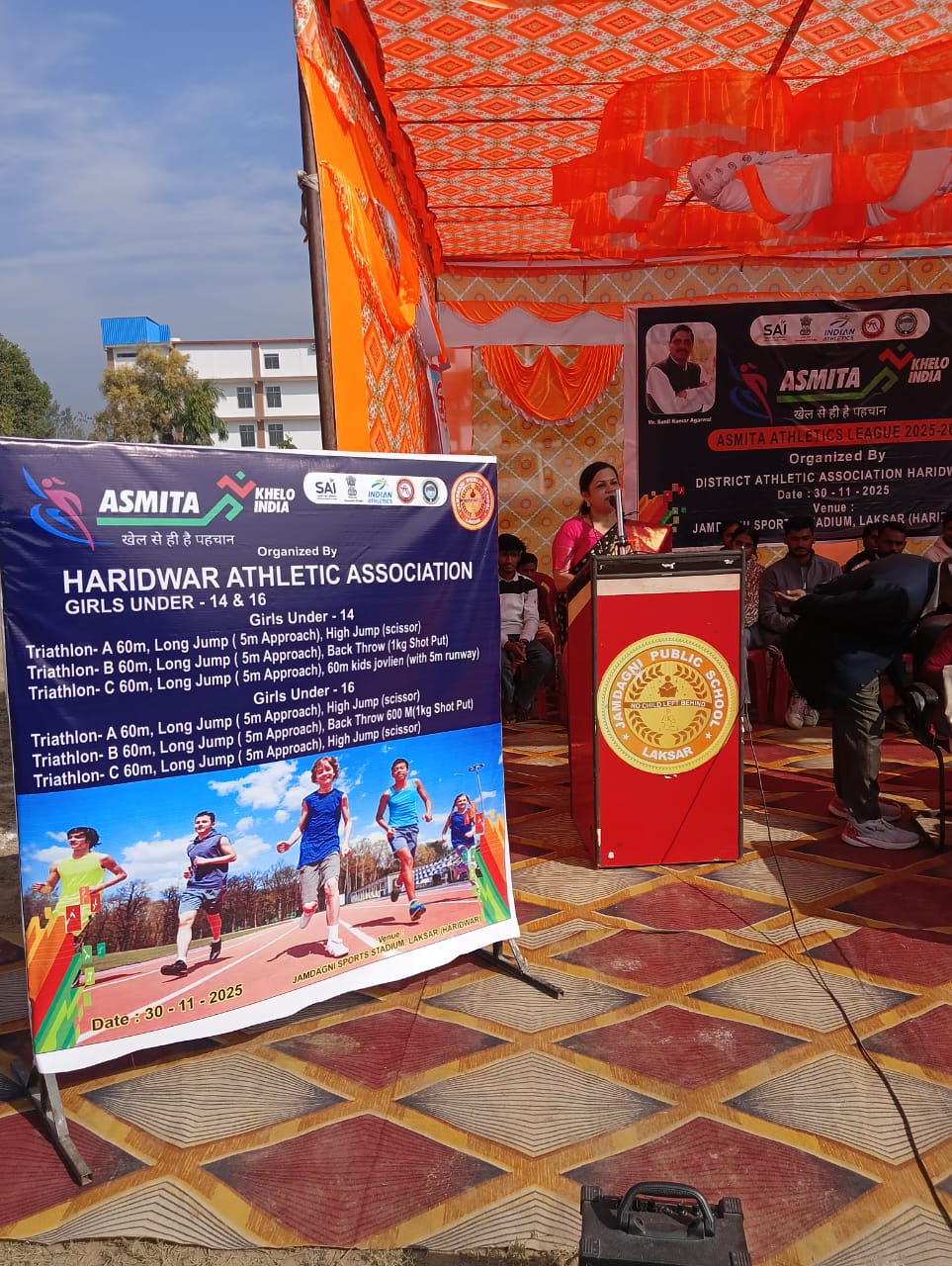 Haridwar:  अस्मिता एथलीट मीट जमदगनी पब्लिक स्कूल पिपली लक्सर में आयोजित की गई यह प्रतियोगिता एथलेटिक फेडरेशन ऑफ इंडिया के तत्वाधान में मुख्य अतिथि डॉ मनु शिवपुरी ब्रांड एंबेसडर बेटी बचाओ बेटी पढ़ाओ और जेवलिंग थ्रो इंटरनेशनल चैंपियन नीरज चोपड़ा,̊गोल्ड मेडलिस्ट ओलंपिक गेम्स के कोच श्रीमान नसीम अहमद (̊कोच)̊ को आमंत्रित किया गया ।