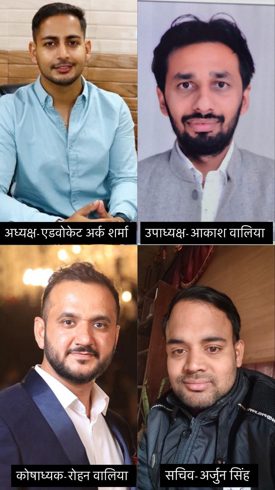 बैठक में सर्वसम्मति से अध्यक्ष – अधिवक्ता इंजीनियर अर्क शर्मा, उपाध्यक्ष – आकाश वालिया, कोषाध्यक्ष – रोहन वालिया, सचिव – अर्जुन सिंह को बनाया गया ।