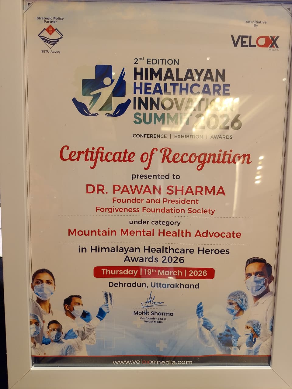 डॉ. पवन शर्मा को यह पुरस्कार वेलोक्स मीडिया और उत्तराखंड सेतु आयोग द्वारा राजपुर रोड स्थित होटल हयात सेंट्रिक में आयोजित किये गये कार्यक्रम में दिया गया।