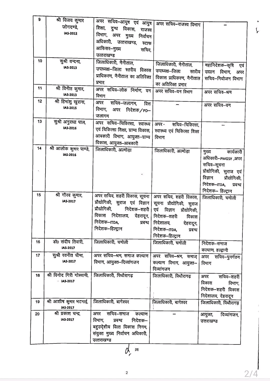 आईएएस धीरज गर्ब्याल को ग्राम्य विकास सचिव की जिम्मेदारी दी गई है। वहीं, पराग मधुकर विशेष सचिव, पंचायती राज बनाए गए हैं। वहीं, आईएएस सोनिका को एचआरडीए उपाध्यक्ष बनाई गई हैं। आईएएस हिमांशु खुराना वन विभाग के अपर सचिव बनाए गए हैं। वहीं आईएएस संदीप तिवारी को डीएम चमोली के पद से हटाकर समाज कल्याण विभाग का निदेशक बनाया है। अपर सचिव शहरी विकास गौरव कुमार को डीएम चमोली की जिम्मेदारी दी गई है।
