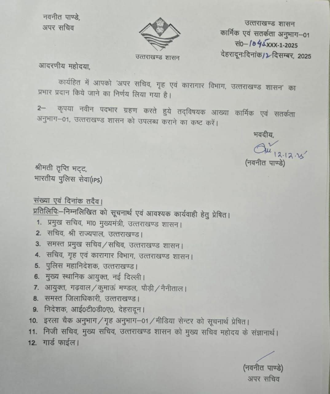 IPS अधिकारी तृप्ति भट्ट को शासन में मिली बड़ी जिम्मेदारी