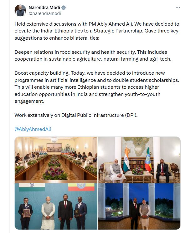 “‘द ग्रेट ऑनर निशान ऑफ इथियोपिया’ से सम्मानित होकर मैं गौरवान्वित हूं। यह सम्मान मैं भारत के 140 करोड़ नागरिकों को समर्पित करता हूं।”