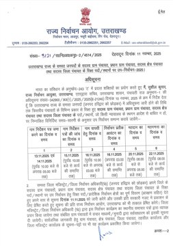 Uttarakhand: जारी अधिसूचना के अनुसार, 13 और 14 नवंबर को नामांकन पत्र दाखिल करने की तिथि रखी गई है। ऐसे में 20 नवंबर को मतदान होगा और 22 नवंबर को मतगणना की प्रक्रिया संपन्न होगी।