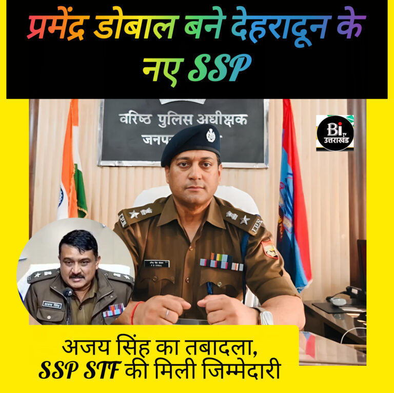 Uttarakhand Police Transfer: राजधानी में अचानक बढ़ते अपराधों के बीच शासन ने पुलिस महकमे में बड़ा प्रशासनिक फेरबदल कर दिया है। बीते 16 दिनों में देहरादून में पांच हत्याएं हो … Continue reading Uttarakhand Police Transfer: प्रमेंद्र डोबाल बने देहरादून के नए कप्तान, अजय सिंह को दी गई एसएसपी एसटीएफ की जिम्मेदारी, देखें सूची