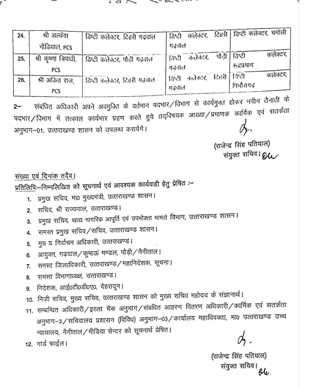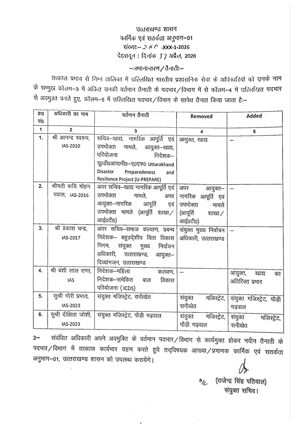 सचिवालय सेवा के 26 PCS अधिकारियों की सूची में कई महत्वपूर्ण नाम शामिल हैं। नंदन सिंह डुंगरियाल को उत्तराखंड अधीनस्थ सेवा चयन आयोग (UKSSSC) का नया सचिव नियुक्त किया गया है। भर्ती परीक्षाओं की पारदर्शिता और सुचारू संचालन के मद्देनजर यह एक अहम तैनाती मानी जा रही है।