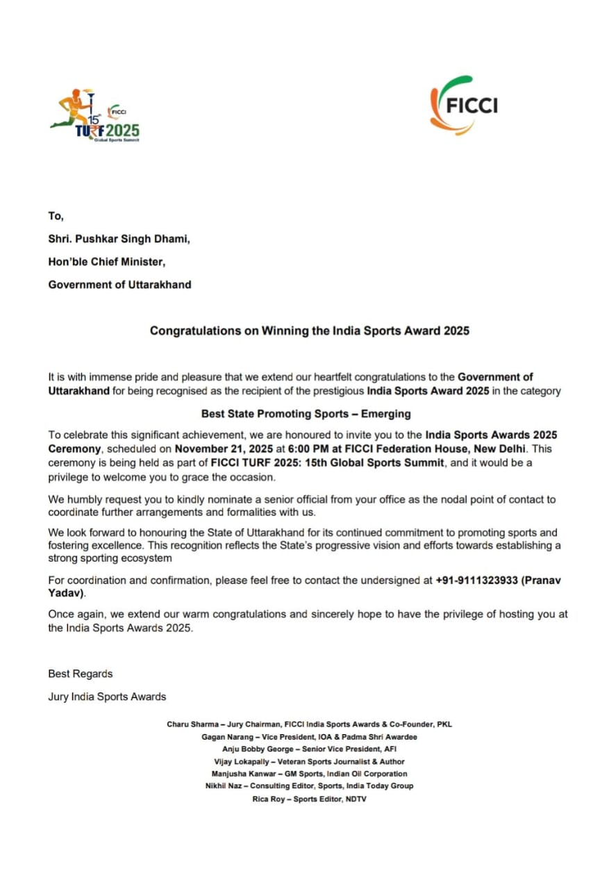 इंडिया स्पोर्ट्स अवार्ड 2025 समारोह का आयोजन 21 नवंबर 2025 को शाम 6 बजे नई दिल्ली के फिक्की फेडरेशन हाउस में किया जाएगा।